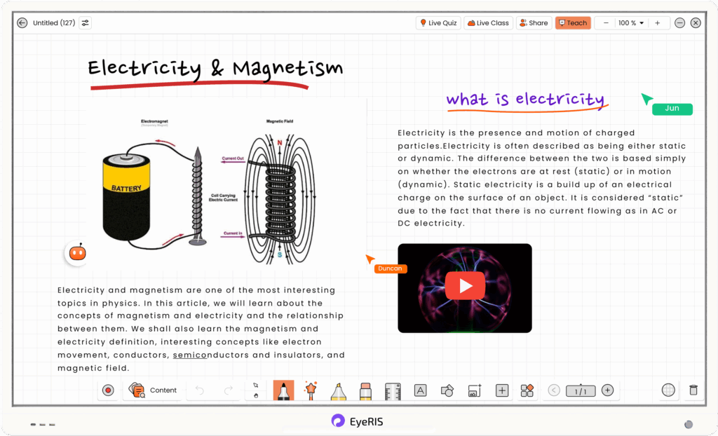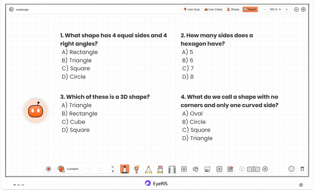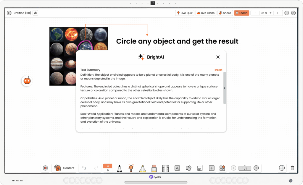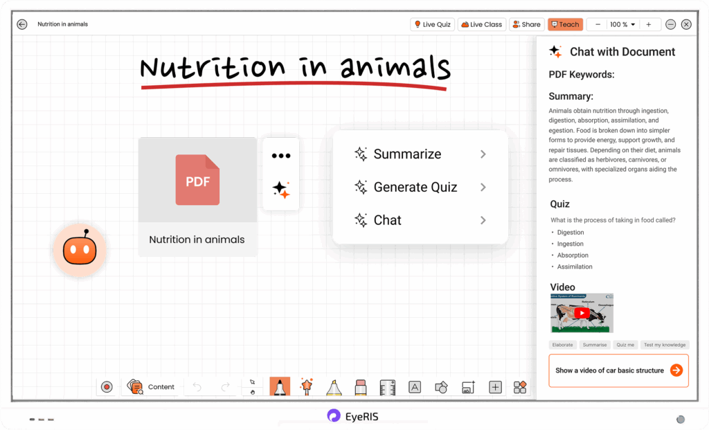 Transform PDFs into interactive lessons with EyeRIS. Ask questions, create quizzes, and teach seamlessly—all powered by AI on India’s leading smart board for teaching.