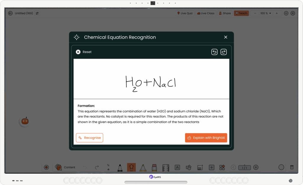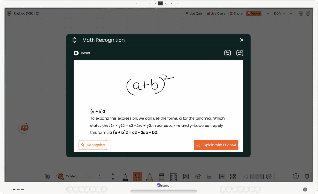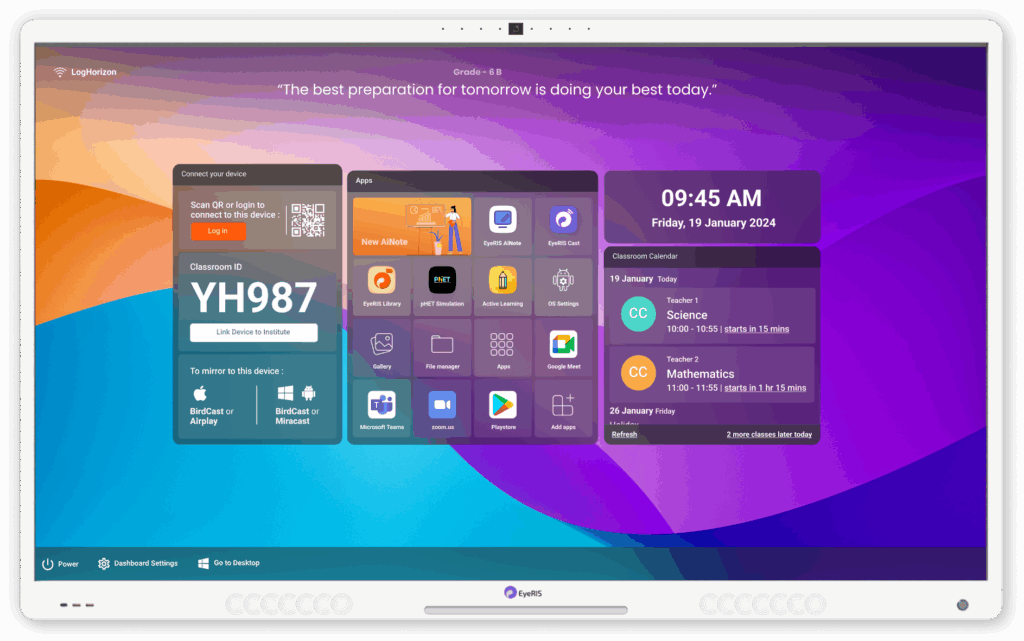 Forget outdated interactive flat panels. EyeRIS AI empowers educators with over 100 built-in AI tools designed to save time and boost engagement.